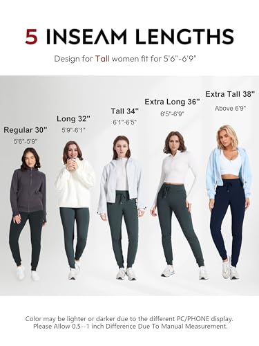 • Designed for Tall Women: The fleece lined joggers with pockets feature with 5 inseam lengths: 38", 36", 34", 32", 30". Perfect for tall or extra tall women. Please check the size chart before buying