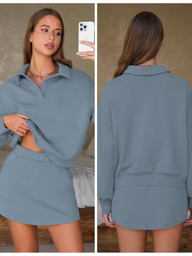 More information about EXLURA Women Two Piece Sets 2025 Casual Polo Sweatshirt Skorts Matching Set Short Tennis Skirt Fall Workout Tracksuit Outfits