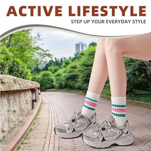 • 🏸【Retro Stripes, Modern Versatility】​​ – Pair these ​​striped socks​​ with sneakers, boots, or slides to elevate jeans, dresses, or workout gear. Crew height stacks neatly or folds down for urban adventures.