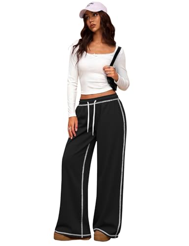 LUYAA Women Wide Leg Sweatpants Low Rise Baggy Fleece Sweatpants for Womens with Pockets 2025 Trendy 5