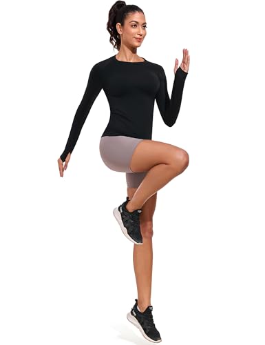 • 【Thumb Hole Design for Comfort】Keep your sleeves in place and hands protected with built-in thumb holes. Ideal for running shirts women, this design enhances warmth and focus during your activities.