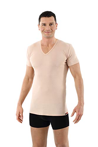 Men's Invisible v-Neck Business Undershirt with Short Sleeves 100% Organic Cotton Nude Beige 4