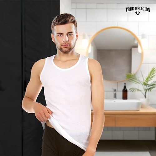 HOT ! True Religion Lightweight Tank Tops for Men, 5 Pack Classic Ribbed Cotton Mens Undershirts