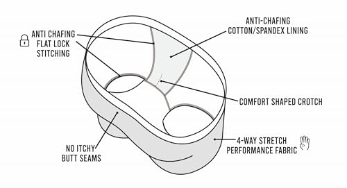 • ENHANCED COMFORT/ANTI-CHAFING/ANTI-ITCH: Experience all-day wear without irritation and added comfort with no itchy seams on the rear, and anti-chafing features including cotton/spandex lined crotch, and flat lock stitching.