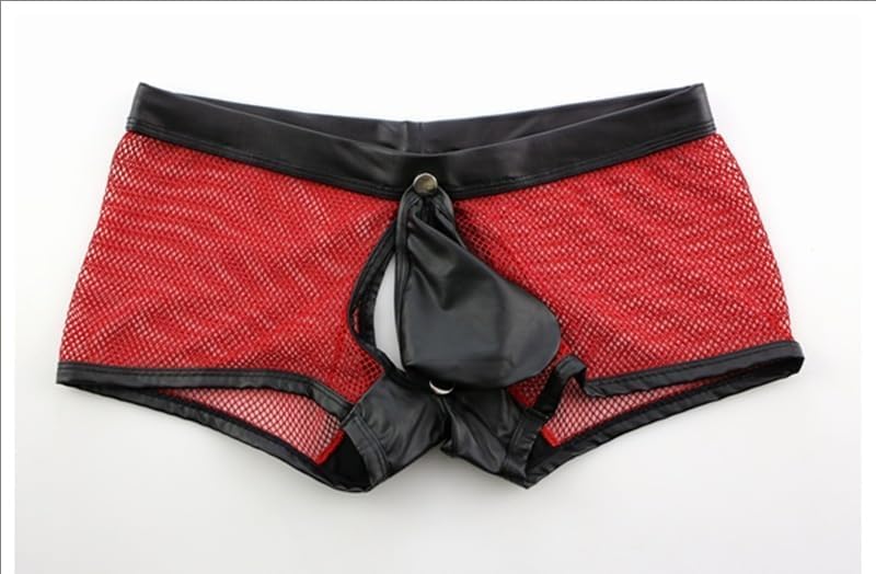 More information about Men's Sexy Underwear with Large Mesh Breathable Low Waist Hollowed Out Boxer Briefs Leather Mesh