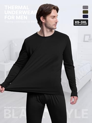 • Long Underwear Mens Features: These mens thermals are crew neck with no tag and sewn tightly, smooth edges and seams to give you a comfortable wearing experience; Machine washable, not easy to pilling, wrinkle, shrinking, and fade