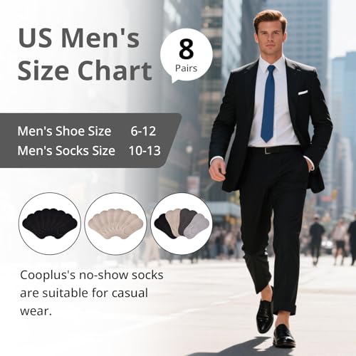 HOT ! COOPLUS 8 Pairs No Show Socks Men Non Slip Low Cut Cotton Invisible Socks for Loafer Flats