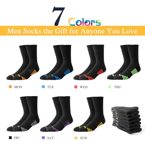 JOYNÉE 7 Pairs Men's Running Sports Week Socks Athletic Comfort Crew Socks,Sock Size:10-13 5