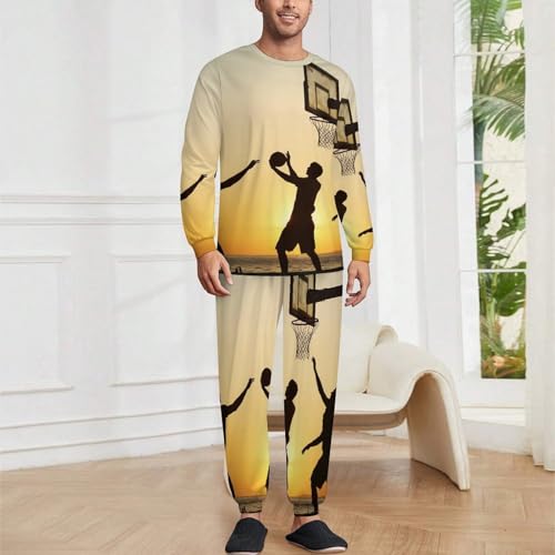Playing Basketball at Sunset Men’s Pajama Set Long Sleeve Top And Pants Loungewear Sleepwear Pjs Nightwear 5
