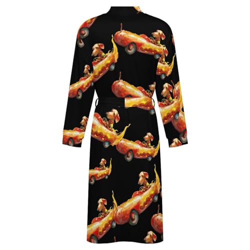 Dachshund Driving Hot Dog Flame Car Soft Robe Long Sleeve Bathrobes V Neck Sleepwear Spa Robes with Belt Men Woman 4