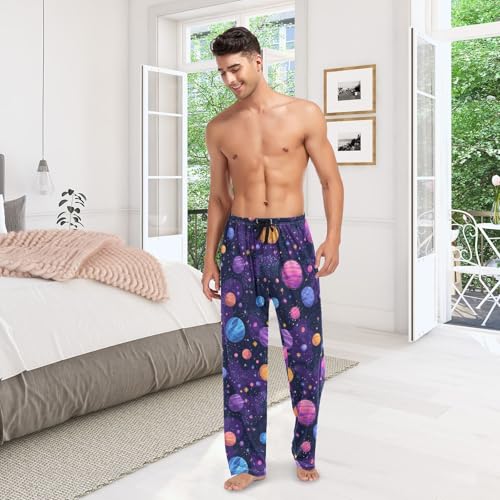 HOT ! Men's Pajama Pants Stars Planet Pajama Pants for Men PJs Bottoms Drawstring Pockets Purple Sleep Lounge Pants S