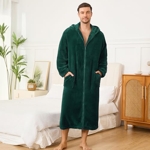 HOT ! U2SKIIN Men's Plush Fleece Hooded Robe, Soft Warm Long Bathrobe with Pockets, Cozy Spa Shower Robe for Men with Front Zipper