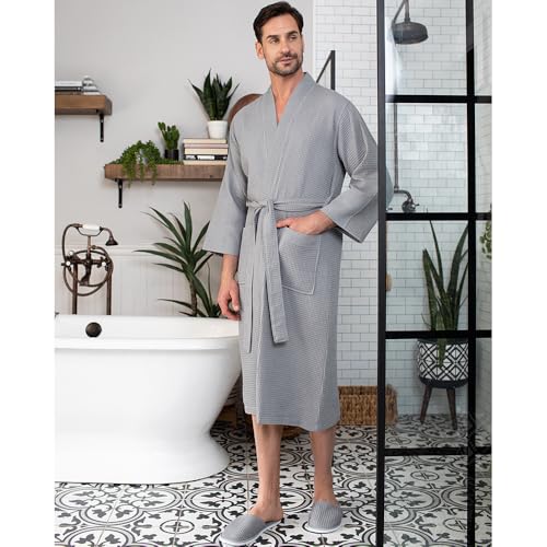 HOT ! Lotus Linen Men’s Waffle Weave Cotton Bathrobe – Lightweight, Quick Dry Spa Robe, Personalized Robes