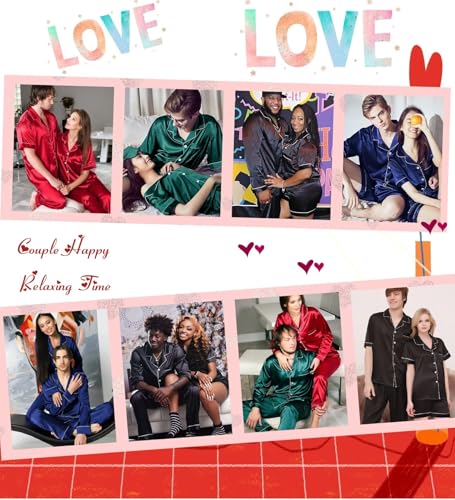 • COUPLES SATIN PAJAMA SETS - 4 Pcs pjs is made of satin with some stretch touch, silky-smooth, very softly and comfy. Lightweight and skin-friendly material care for people's health.
