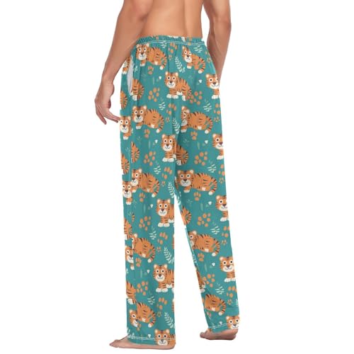 Men's Pajama Pants Cute Tigers Green Pajama Pants for Men PJs Bottoms Drawstring Pockets Sleep Lounge Pants S 6