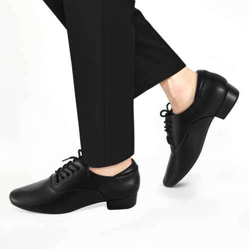 Black Ballroom Dance Shoes Leather Character Shoes for Men's Salsa Latin Tango Dancing 6