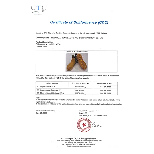 • 【Steel Toes Work Shoes, U.S Standard Size】The slip-resistant work safety shoes with steel toes are produced in U.S standard size in order to ensure that workers' toes are relaxing. Furthermore, our steel toe boots boast impact-resistance(200±4J) and compression-resistance (15±0.1KN), comforming to ASTM F2413-18 I/C, suitable for machinery, concrete, welders, construction, heavy industry, manufacturing and storing, transportation, landscaping, gardening, agriculture and outdoor hiking.
