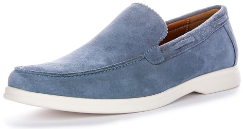 Charles Men's Navy Suede Leather Slip-On Loafers, Smart-Casual Comfort Shoe 5