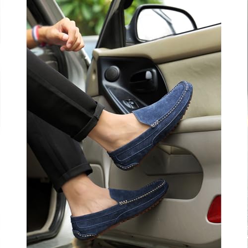 Men's Handmade Suede Wide Plain Toe Driving Penny Loafers Slip on Flat Casual Dress Boat Shoes Classic British Soft Sole Business Moccasins Formal Shoes 5