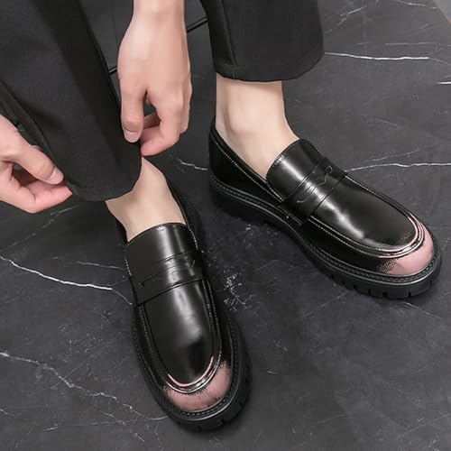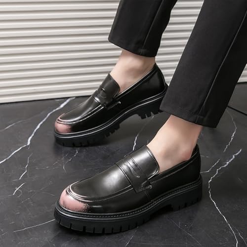 Men's Leather Platform Slip-On Loafers Classic Round Toe Chunky Heel Comfortable Anti-Slip Lug Sole Slip-On Penny Loafers for Wedding Business Dressy Driving Casual 6