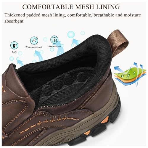 Men's Water-Resistant Leather Slip On Loafers Walking Shoes, Comfortable Breathable Business Dress Casual Driving for Outdoor Hiking 6