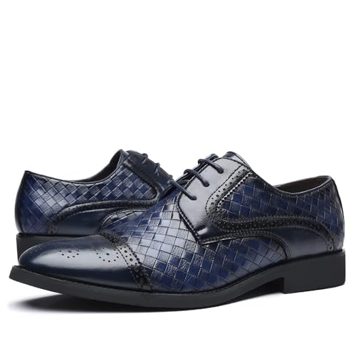 Men's Business Casual Dress Shoes Italy Prince Classic Wingtip Lace-Up Brogues Modern Formal Woven Leather Oxfords 6