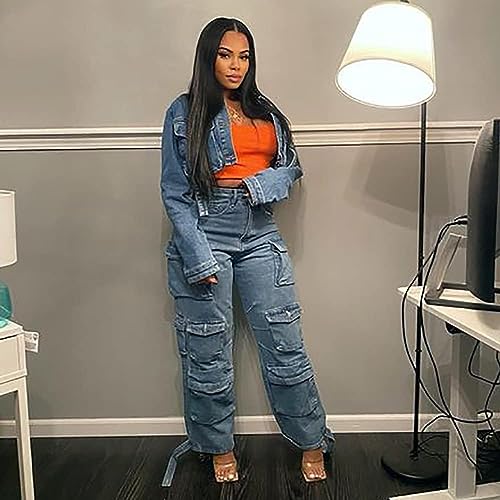 • Feature: Baggy cargo denim jeans for women, multiple practical and functional pockets, which are deep and big enough to store and secure your keys or phone and other essentials. Straight leg cargo pants, relaxed fit, elastic high waist, zipper and button closure.