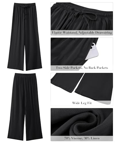 • Linen pants inseam: 28''. These wide leg pants woman offer a flattering fit that sits comfortably at your natural waistline with a high rise and elastic waistband; the adjustable drawstrings allow you to customize the fit to your liking.