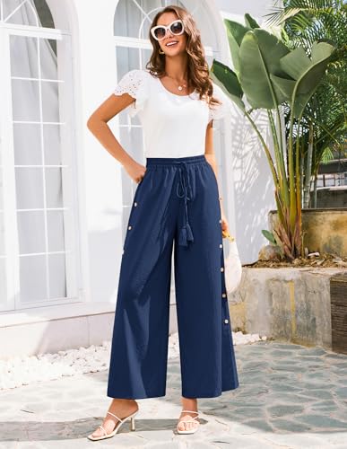GRACE KARIN Women's Summer Wide Leg Pants High Waisted Palazzo Pants Caual Flowy Beach Trousers with Pockets 4