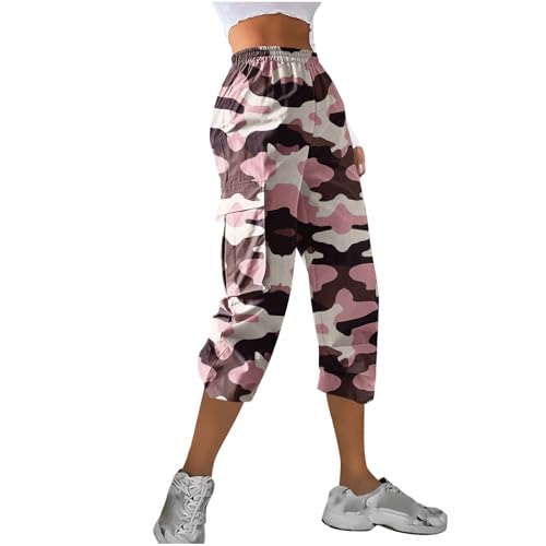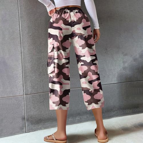 Womens Plus Size Cargo Capris Fashion Camouflage Elastic Waist Straight Leg Loose Sporting Capri Pants with Pockets 7