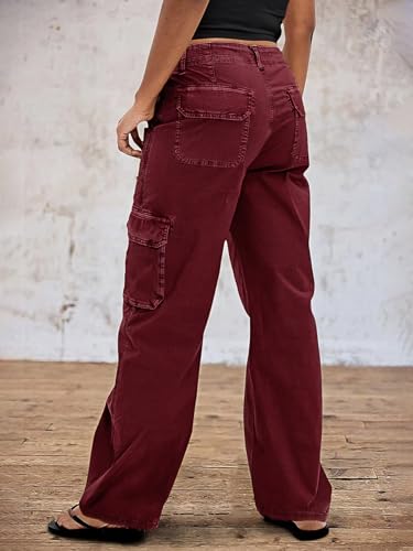 Flamingals Straight Leg Pants for Women Mid Rise Casual Vintage Patch Pockets Solid Pants 4