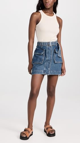 HOT ! Pixie Market Women's AR Denim Cargo Belted Mini Skirt