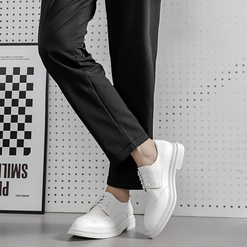 Men's Classic Leather Wingtip Low Heel Oxford Shoes Fashion Pointed Toe Comfort Non Slip White Dress Shoes Business Office Wedding Shoes 6