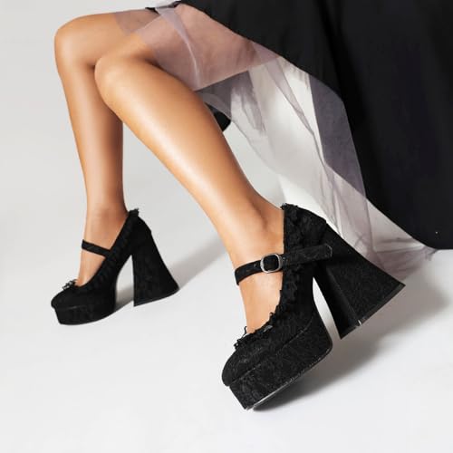 HOT ! Women's Lace Platform Heels – Gothic Vintage Chunky High Heel Shoes with Adjustable Strap for Party,Cosplay,Halloween