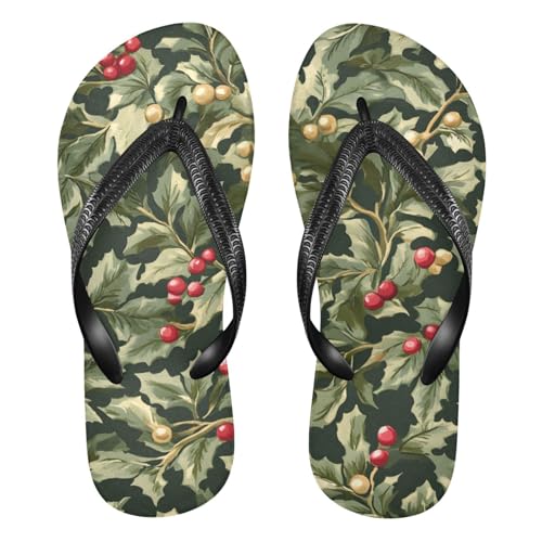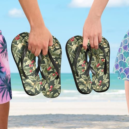 Womens Flip Flops Christmas HollyNon-Slip Casual Beach Slippers Rubber Sandals214B81992 5