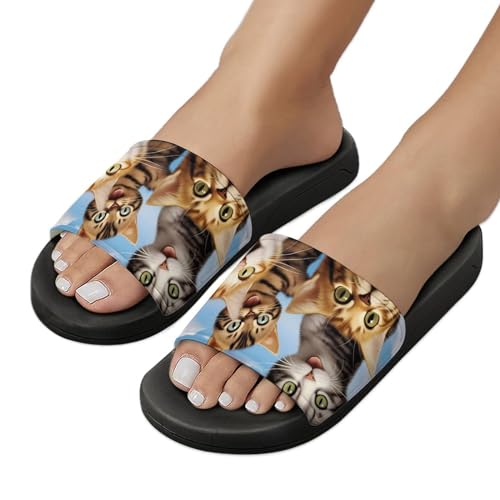 HOT ! Cute Cats Butterfly Non Slip Slides Sandals for Women Men Quick Drying Shower Shoes for Bathroom Pool Beach