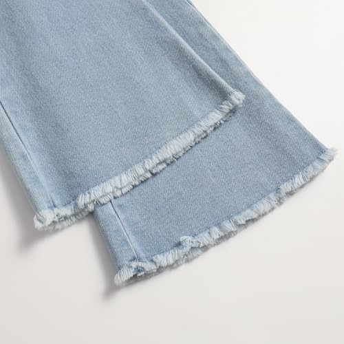 Girls' High Waisted Flared Jeans Elastic Waist Ripped Denim with Pocket 7
