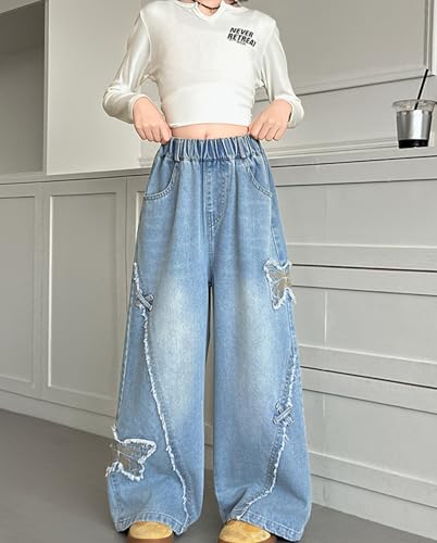 • Features: Cute jeans for teens feature a chic wide-leg silhouette, 2 slant pockets and 2 back pockets can secure small essentials, cute butterfly printed, elastic adjustable waistband ensures comfortable fit during the day