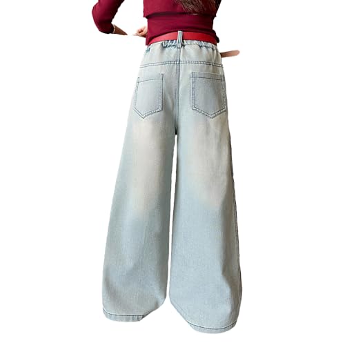 HOT ! Tween Girls Wide Leg Jeans-Elastic Waistband Baggy Denim Pants with Pockets, Casual Streetwear Jeans for Girls
