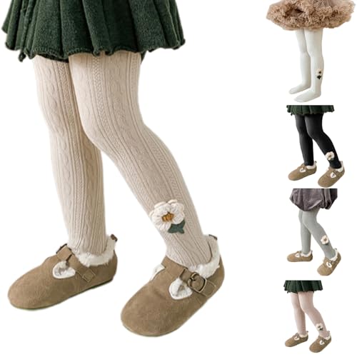 Tights, Fleece Lined Leggings for Girl Lovely Flower Decors Stretch Stockings 3-8Y Autumn Spring Sweet Toddler 4