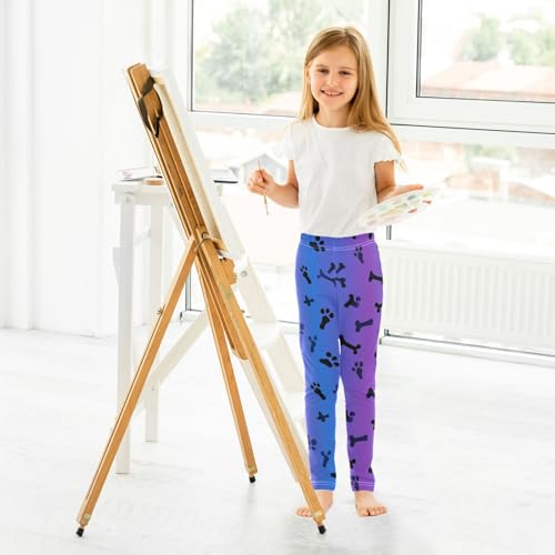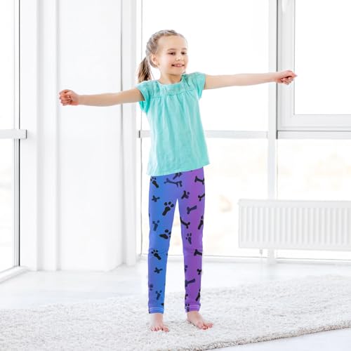 Blue Purple Cat Dog Bone Paw Print Girls Casual Leggings for Kids Printed Long Pant Bottoms Stretch and Soft 4