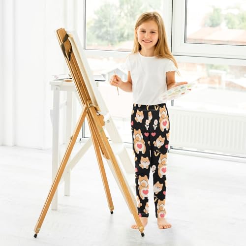 Corgi Puppy Flower Heart Girls Leggings Soft Stretch Workout Yoga Dance Pants for Kids Casual Tights 7
