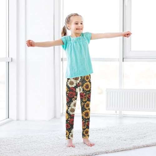 Girls Leggings Sunflower Daisy Poppy Flower Soft Toddler Leggings for Girls Kids Pants Size 4T-10T 5