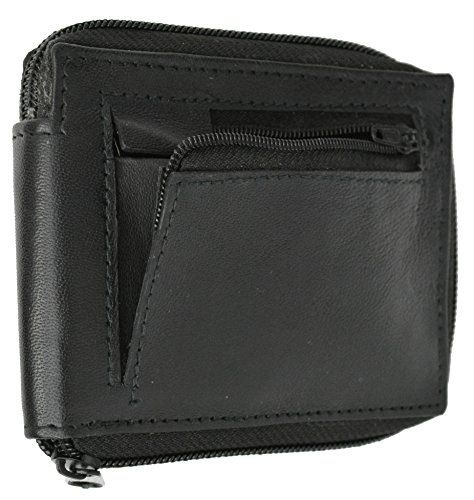 More information about Men's premium soft leather zippered bifold wallet outside zippered coin pocket
