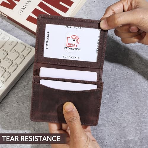 Leather Credit Card Holder For Men and Women,Small RFID Blocking Bifold Wallet (With ID Slot, Hunter Coffee Brown) 4