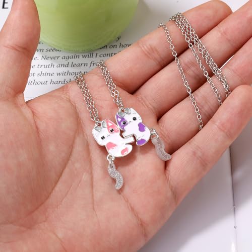 2pcs Friendship Necklace, Magnetic Matching Couples Best Friend for Necklaces Charm Pendant Forever Jewelry Gift for Anniversary Birthday Women Men(Cats) 2