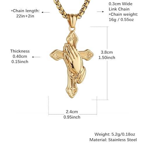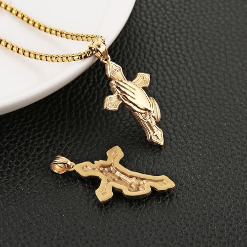 HZMAN Praying Hand Cross Necklace for Men Stainless Steel Retro Small Prayer Hands Pendant Christian Jewelry Gift 5