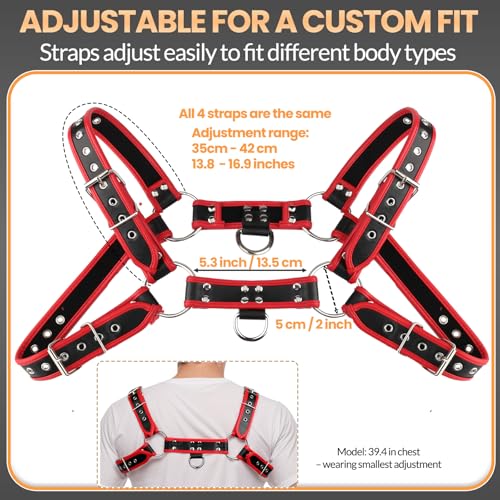 More information about Men's PU Leather Chest Harness – Adjustable Shoulder Belt for Fashion Styling, Red Black Costume Accessory for Punk Party and Cosplay