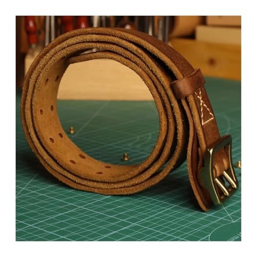 HOT ! Original Handmade Double-Needle Buckle Men's Belt Washed Water Belt Genuine Leather Belt(125cm,Coffee)