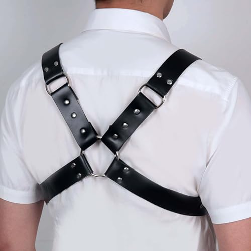 Fstrend Men's Leather Chest Harness Belt Rivets Black Shoulder Strap Fashion Rave Body Accessory 4